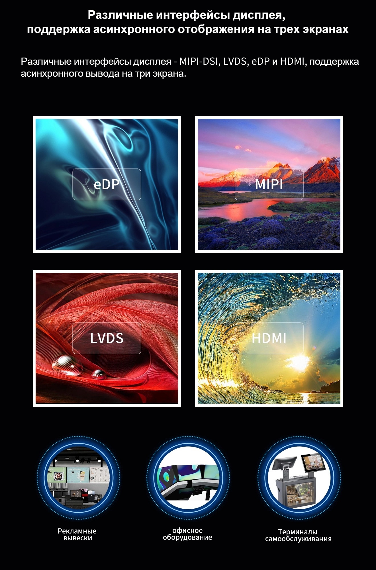 | Display Interface | 2 * MIPI_DSI display interface (1 multiplexing LVDS), resolution up to 1920x1080@60Hz 1 * LVDS display interface, resolution up to 1280x800@60Hz 1 * HDMI display interface (HDMI2.0), resolution up to 4096x2160@60Hz 1 * eDP display interface, resolution up to 2560x1600@60Hz | Audio | Audio (power amplifier) output interface; Dual channel audio output (headphone socket); Single channel MIC audio input |